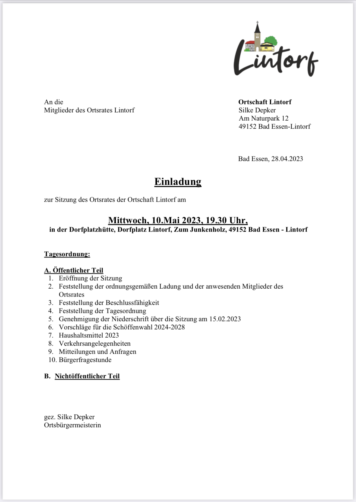 Immer am 1. Mittwoch im Quartal findet an der Hütte auf dem Dorfplatz Lintorf ein regelmäßiger Bürgertreff statt. Dabei werden unterschiedlichste Themen aus der Ortschaft werden aufgegriffen. Lintorfer Bürgerinnen und Bürger haben hier eine gute Gelegenheit mit Mitgliedern des Ortsrates ins Gespräch zu kommen. Sie können Fragen stellen, Anregungen geben oder sich mit anderen Anwohnerinnen […]